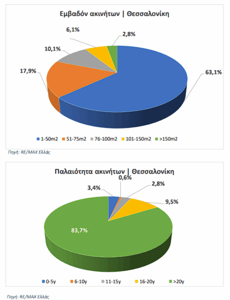 Στη Θεσσαλονίκη, σύμφωνα με τη RE/MAX Ελλάς, η ζήτηση επικεντρώνεται κυρίως σε κατοικίες μικρής επιφάνειας. Το 63,1% των μισθώσεων αφορά ακίνητα έως 50 τ.μ., ενώ ένα επιπλέον 17,9% κατοικίες από 51 έως 75 τ.μ. Στην ανατολική Θεσσαλονίκη, σε περιοχές όπως η Καλαμαριά και η Θέρμη, ξεχωρίζουν οι μισθώσεις μεγαλύτερων κατοικιών, από 75 έως 150 τ.μ. Στο κέντρο της πόλης κυριαρχούν οριακά τα ακίνητα από 50 έως 100 τ.μ., ενώ στη δυτική Θεσσαλονίκη η πλειονότητα των μισθώσεων αφορά κατοικίες έως 50 τετραγωνικών μέτρων.