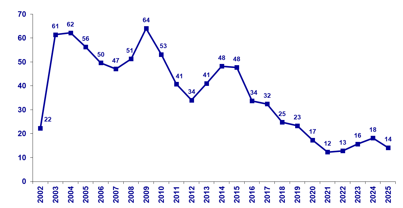 Δηλαδή, η πιθανότητα να λάβει κάποιος πλαστό τραπεζογραμμάτιο είναι εξαιρετικά περιορισμένη, καθώς ο αριθμός των πλαστών είναι πολύ χαμηλός σε σχέση με τα γνήσια σε κυκλοφορία. Ενδεικτικό είναι ότι το 2025 εντοπίστηκαν 14 πλαστά ανά εκατομμύριο γνήσιων τραπεζογραμματίων σε κυκλοφορία. Πρόκειται για ένα από τα χαμηλότερα επίπεδα από την εισαγωγή του ευρώ και μετά.