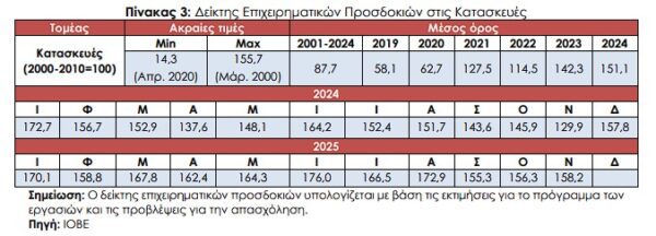 περυσινό (129,9 μονάδες). Η μεταβολή αυτή ήταν αποτέλεσμα της μικρής βελτίωσης των προσδοκιών στα Ιδιωτικά έργα, με τις προσδοκίες στα Δημόσια έργα να ενισχύονται ελαφρά.