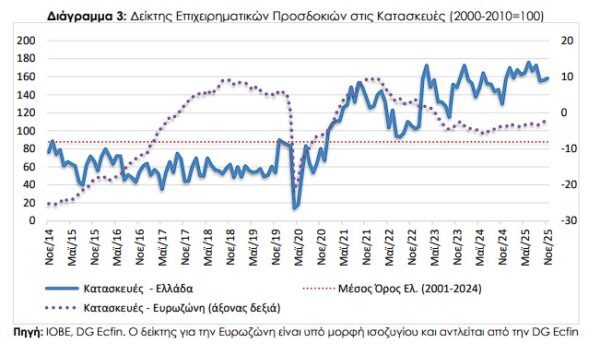 Ο Δείκτης Επιχειρηματικών Προσδοκιών στις Κατασκευές διαμορφώθηκε τον Νοέμβριο, στις 158,2 μονάδες (από 156,3 μον. τον Οκτώβριο), σε επίπεδο σημαντικά υψηλότερο από το αντίστοιχο