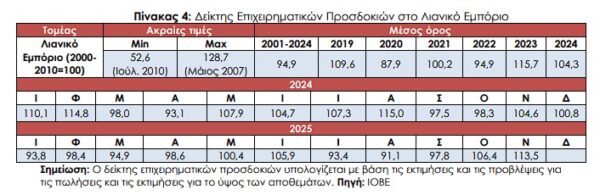 προμηθευτές διαμορφώνονται στις +77 μονάδες. Σε κανονικά για την εποχή επίπεδα κυμαίνονται οι προβλέψεις για την απασχόληση, ενώ στις τιμές ο σχετικός δείκτης διαμορφώνεται σε ήπια