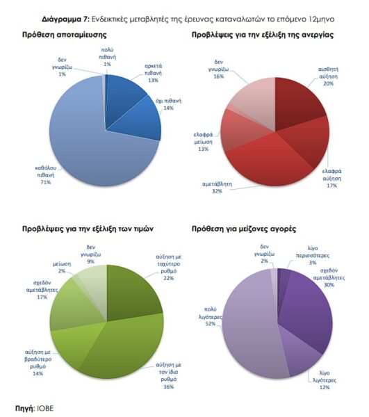 Ο δείκτης της πρόθεσης για αποταμίευση τους προσεχείς 12 μήνες υποχώρησε ελαφρά στις –70,8 μονάδες από -67,5 τον Οκτώβριο. Το 85% των νοικοκυριών δεν θεωρεί πιθανή την αποταμίευση