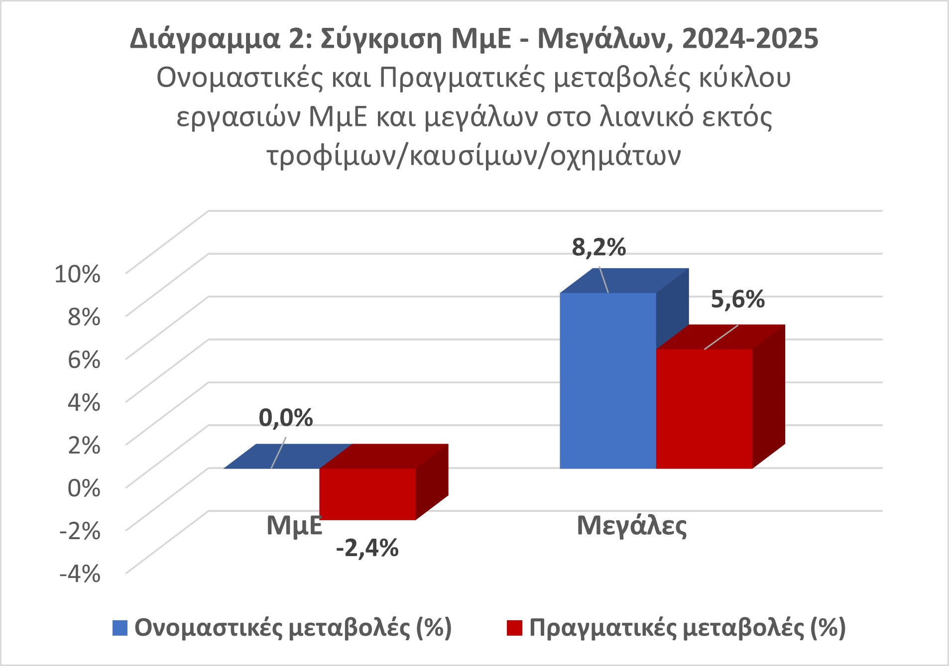 - Το 2025, οι μεγάλες επιχειρήσεις κατέγραψαν σημαντική ενίσχυση των πραγματικών τους πωλήσεών κατά 5,6% [+8,2%] (Διάγραμμα 2).