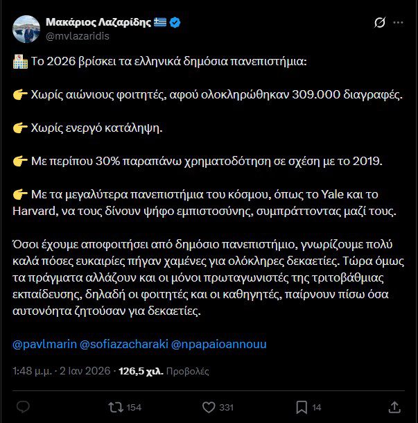 — Μακάριος Λαζαρίδης 🇬🇷 (@mvlazaridis) January 2, 2026