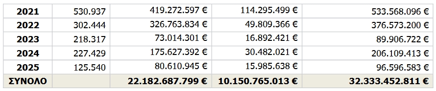 Η κύρια οφειλή στο τρίμηνο Ιούλιος – Σεπτέμβριος 2025 παρουσίασε μείωση ύψους 5.759.831 €.