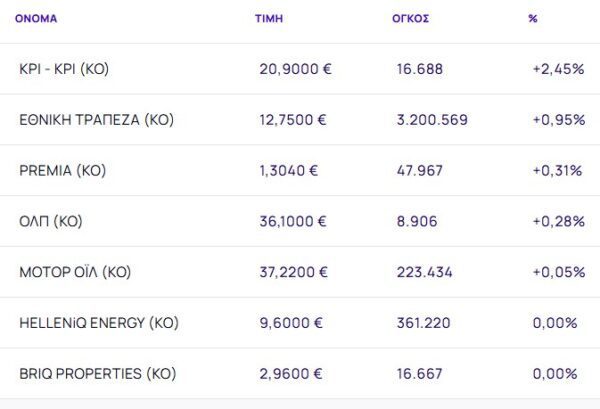 Οι μετοχές με τη μεγαλύτερη άνοδο ήταν: