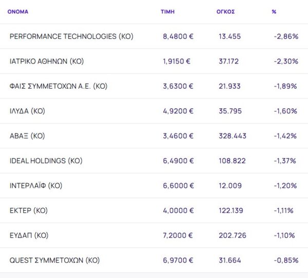 Οι μετοχές με τη μεγαλύτερη πτώση ήταν: