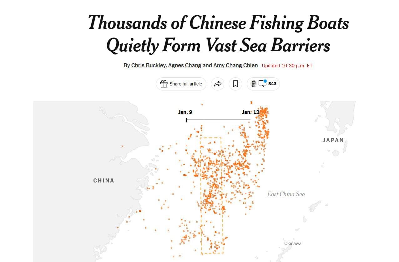 Όπως αναφέρει η εφημερίδα The New York Times, τις τελευταίες δύο εβδομάδες η Κίνα έχει αναπτύξει δύο φορές χιλιάδες αλιευτικά σκάφη για να επιβάλει τον αποκλεισμό της Ταϊβάν