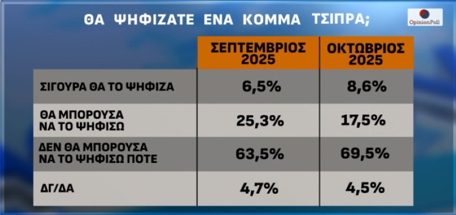 Ένα από τα πιο ενδιαφέροντα ευρήματα της δημοσκόπησης αφορά το ενδεχόμενο ίδρυσης νέου κόμματος από τον Αλέξη Τσίπρα.